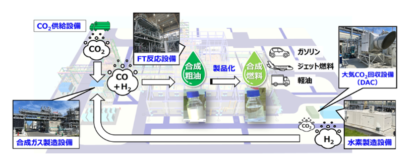 再生可能エネルギー・新エネルギー ENEOS Power株式会社 室蘭事業所向け 蓄電池設備設置工事 ENEOS Power株式会社 工事名称 室蘭事業所向け 蓄電池設備設置工事 施工場所 北海道 完工年 2023年 系統用大規模蓄電所(出力50MW/容量88MWh)建設における電気分野のEPC(設計・調達・施工)案件。 本設備は、カーボンニュートラル社会の実現に向けた再生可能エネルギーの導入拡大に寄与します。電力需給バランスの安定化や出力変動への対策が求められ、各地に分散した系統用大規模蓄電所の運転制御やリソース活用により、需給バランスの安定化に貢献しています。 × ENEOS株式会社 1BD e-fuel実証設備建設工事 ENEOS株式会社 工事名称 1BD e-fuel実証設備建設工事 施工場所 神奈川県 完工年 2024年 合成燃料を一貫製造できる日本初の実証プラント建設における機器・配管・土建のEC(設計・施工計画・施工)および電気・計装分野のEPC(設計・調達・施工)案件。本事業は、国立研究開発法人新エネルギー・産業技術総合開発機構の「グリーンイノベーション基金事業/CO2等を用いた燃料製造技術開発プロジェクト」に採択されたものです。プラントでは、合成燃料の原料である水素をグリーン電力で水を分解して生成し、CO2は主に工場内で出たものを回収して使用します。一部はCO2回収設備で大気中から回収したものを使用します。生産されたe-fuel(合成燃料)は大阪万博の循環バスに使用されています。1BD:1 Barrel per Daye-fuel:合成燃料の中で再生可能エネルギー由来の水素を用いて合成した燃料。e-fuelの"e"はドイツ語のErneuerbarer Strom(再生可能な電力) 出典:ENEOS株式会社「カーボンニュートラル/合成燃料/合成燃料プロセスの商用化に向けて 図3 合成燃料実証プラント全体像」 ×