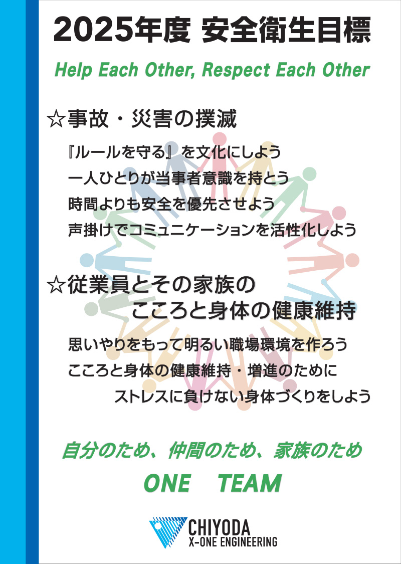 当社は、2025年度の安全衛生目標を制定し、そのポスターを現場出張所含めた全事業場所で掲示して、安全意識の高揚を図っています。