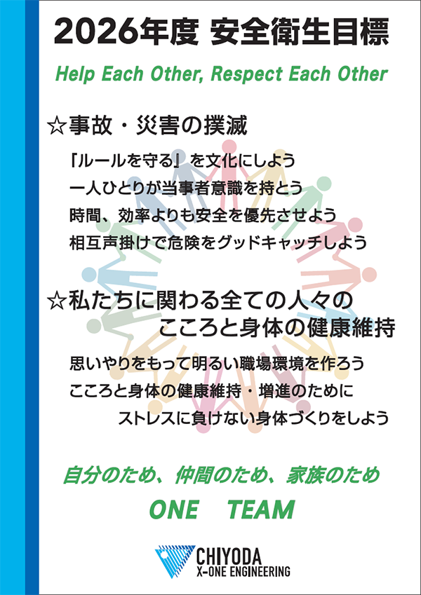 当社は、2026年度の安全衛生目標を制定し、そのポスターを現場出張所含めた全事業場所で掲示して、安全意識の高揚を図っています。